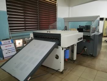 وعددها بالدار 3 ماكينات ، الأولى تم شراءها عند التأسيس وهي موديل العام 2000 ، ثم تم مؤخراً تدشين ماكينتين واحدة موديل 2007 و الأخرى موديل 2014 ، وهي جميعها مقاس 70 ×100وتعمل بنظام الشيت ، وجميعها مزوده بأربع وحدات لونية مما يتيح إختصار الوقت عبر طباعة وجهي الورقة بلونين مختلفين في مرور واحد للورقة على سلندر الطباعة ، تجدر الإشارة إلى أن الطاقة الإنتاجية للماكينة الواحدة بحسب ظروف التشغيل الخاصة بالبيئة الصناعية السودانية تقدر ب 9.000 طبعة في الساعة .